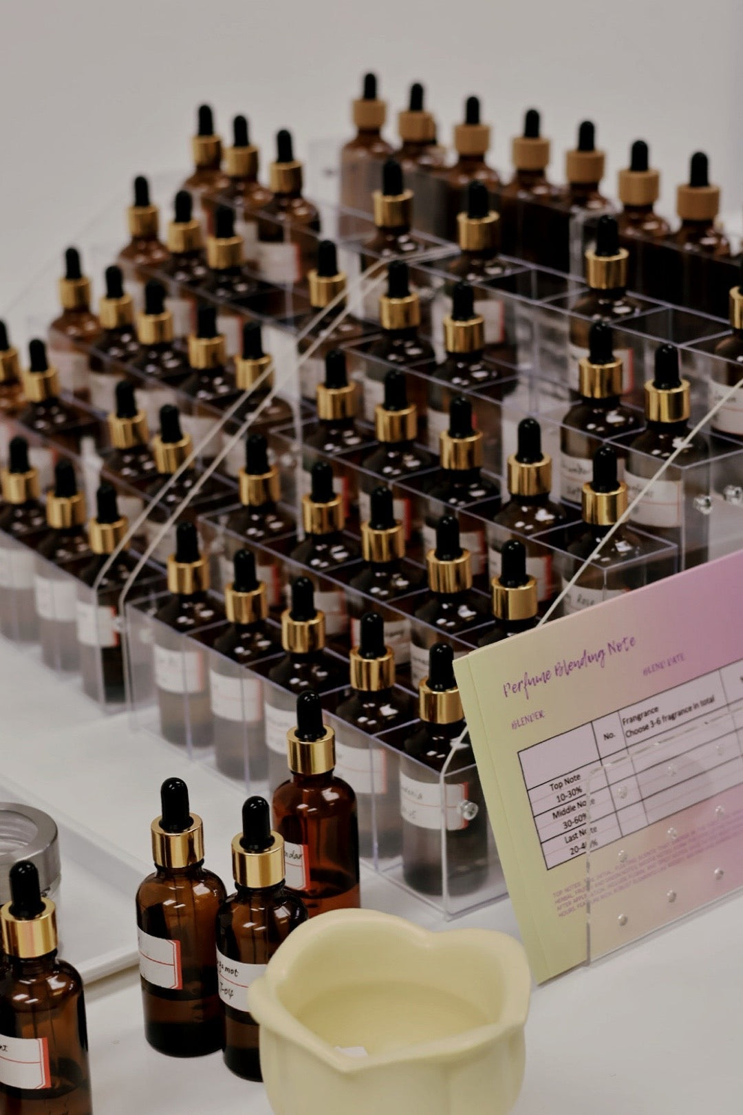 *Create your signature perfume, the combination of different ingredients creates countless scent possibilities. Various perfume bottles and caps can be chosen from. Customize your perfume color and shimmer, and give it a personalized name label.